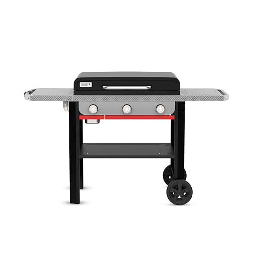 Weber SLATE GP 71cm Premium Gas Griddle, 3 Burners, Even Heat to Edges, Up to 260°C, Porcelain-Enamel Non-Stick Cooking Surface, 3483 cm² Cooking Area, Black (1501758)