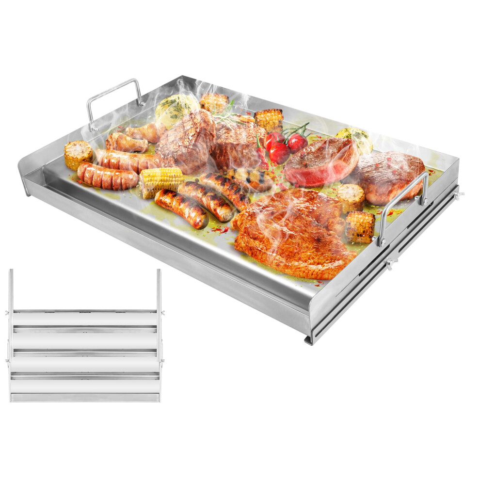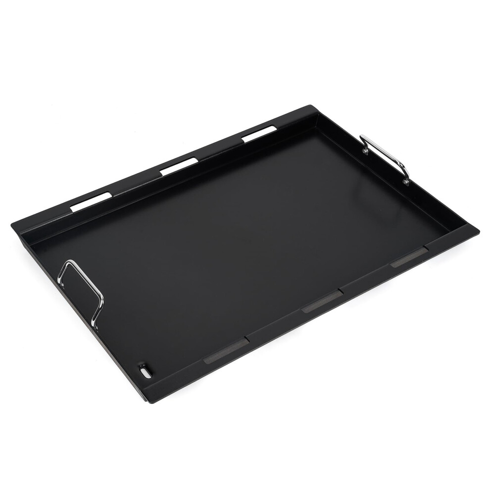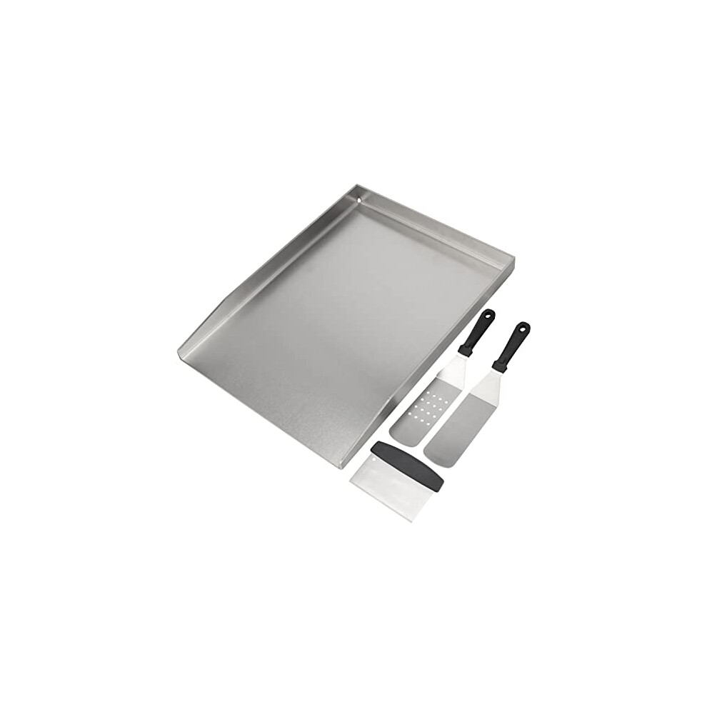Grihero Universal Griddle Plate with Grill Spatula Scraper Accessory Set, 40x30cm Stainless Steel BBQ Plancha Grill Plate with Grease Drain for Weber,