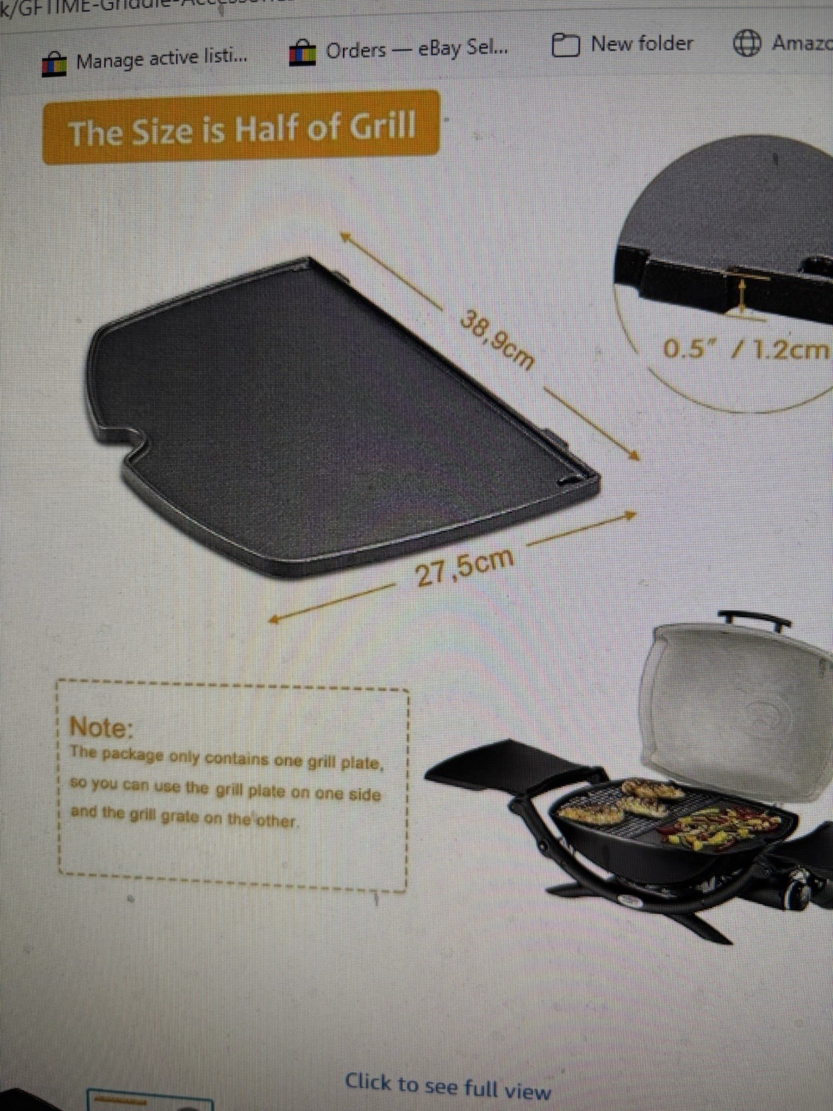 GFTIME 6558 32cm x 22cm Grill Griddle for Weber Q100 & Q1000 Series, Q100, Q120, Cast Iron Grill Griddle Plate Gas Grill Replacement Parts A