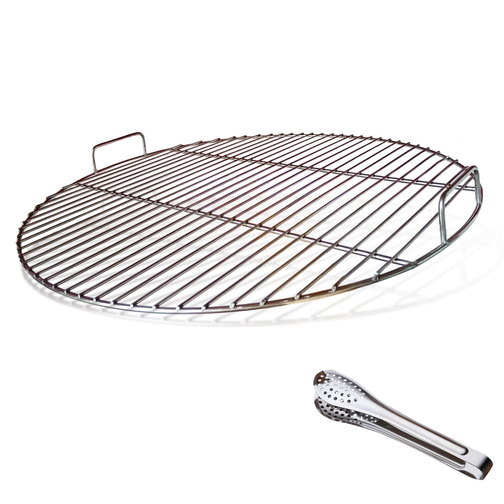 huanniu 304 Stainless Steel Round Cooking Grate with Handle, 54.5 cm Diameter for 57 cm Charcoal Barbecues e.g. Weber, Grill Grates Kettle Grill 57 cm, with Grill Clips