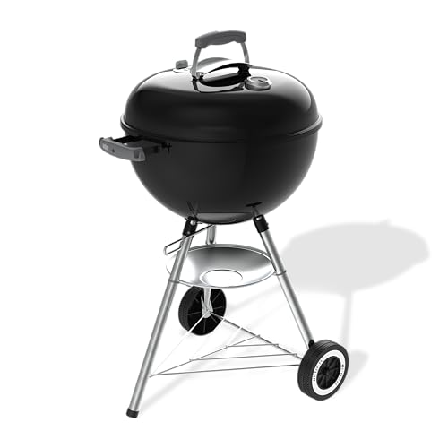 Weber Classic Kettle Charcoal Barbecue/Porcelain-Enamelled Lid & Bowl, 57 cm Cooking Surface, One-Touch Cleaning System, Lid Thermometer, Tripod Stand and Wheels, Black