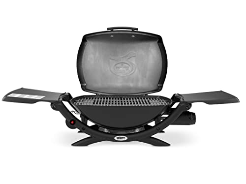Weber Q 1100N Gas Barbecue/Portable Lightweight Grill for Camping, Patios and Balconies with High Efficiency Burner, Porcelain-Enamelled Cast Iron Grates and Electronic Ignition, Midnight Black