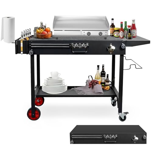 DONWEI Portable Grill Cart Stand,Universal Cart for Weber Q, Ninja Woodfire, Blackstone | Fits 17 & 22 Inch Tabletop Grills | Portable Grill Table