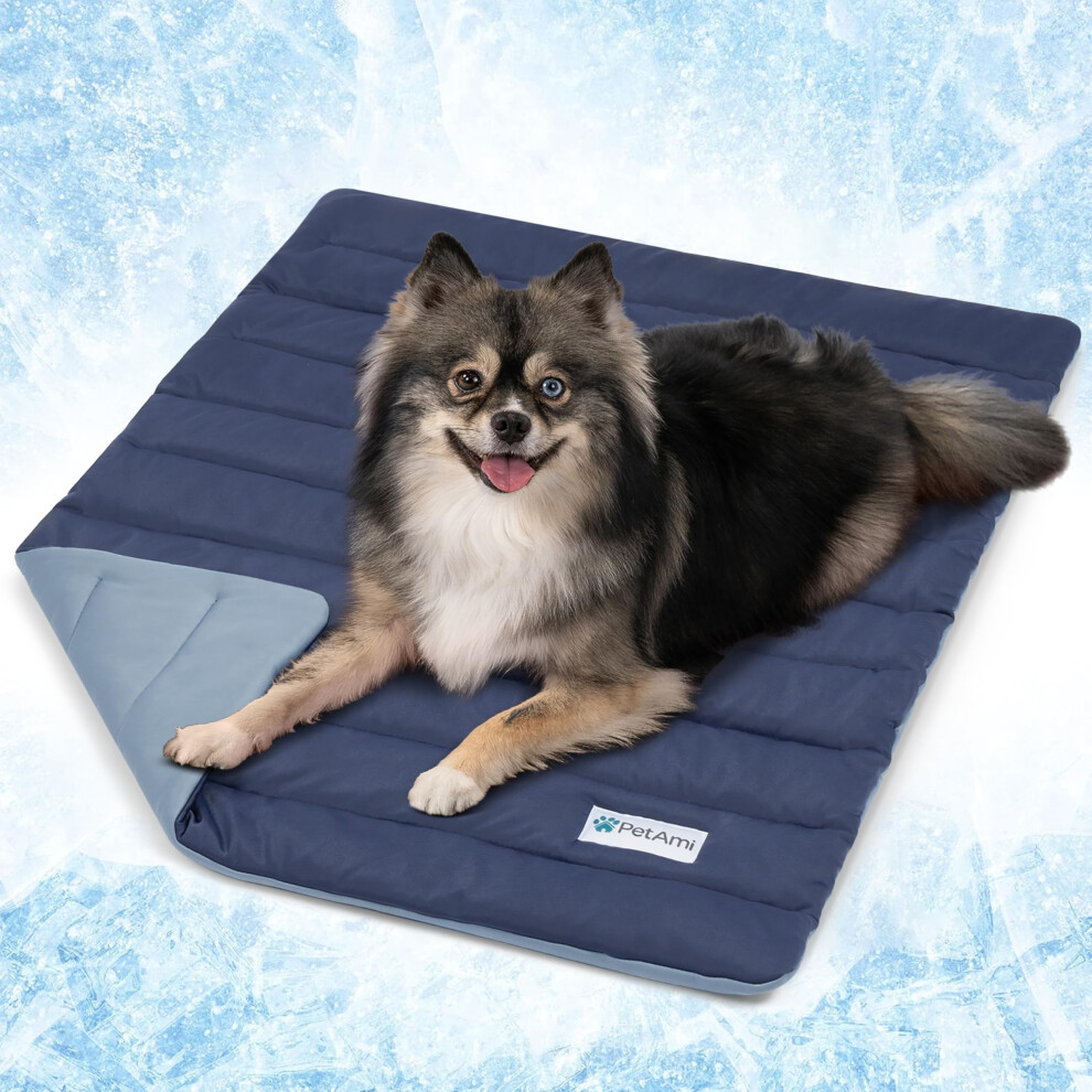 PetAmi Cooling Mat for Dog Premium Pet Cooling Blanket for Crate Kennel Indoor Cat Cool Sleeping Pad Q-MAX Cold Sofa Couch Cover for Summer Navy/D