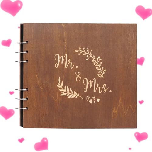 Generisch Wedding Reception Guest Book Guest Book with Bound and Wooden Lid for Guest List Bachelorette Party Birthday Party