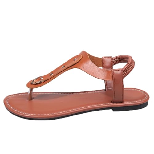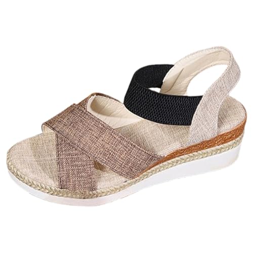 Uwdiohq Womens Flat Sandals Ladies Summer Clip Toe Comfortable Outer Wear Elastic Casual And For Women Heels Wedge White Walking Wide Fit Sandal Fitting Comfy Feet Arch Brown 6