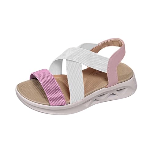Cocila Walking Sandals For Women Comfortable Spring Shoes 2025 Elastic Ankle Strap Lightweight Strappy Platform (Pink, 4) Womens Size 5 Uk Wedge White Heels Flat Wedges Orthopaedic Beaded Wide