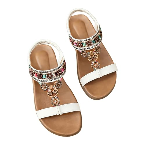 Cocila Summer Sandals Women Womens Comfort Walking Shoes Casual Ankle Elastic Flops White, 4 Sling Back For Uk Flat Ladies Wedge Heels White Size 5 Women'S Orthopedic 4 Green 6 Moshulu Silver