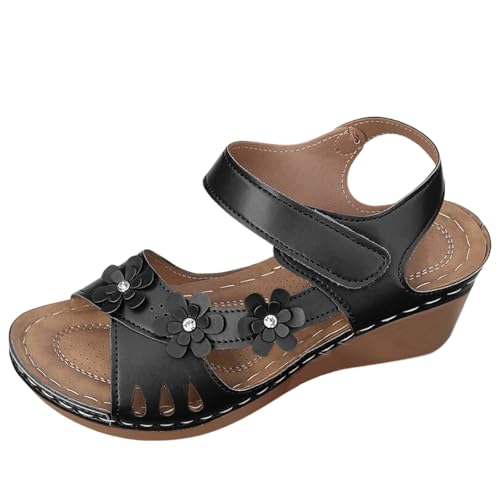 Cocila Summer Sandals Women Women'S Large Size Flat Flower Open Toe Outdoor Beach Casual (Black, 4.5) Sling Back Shoes Pink 6 Womens 8 Uk Ladies Chunky Wide Fit Wedge White Heels Rose Gold For