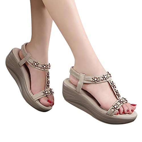 Uwdiohq Womens Flat Sandals Ladies Summer Clip Toe Comfortable Outer Wear Elastic Casual And For Women Heels Wedge White Walking Wide Fit Comfy Sandles Wedges Fitting Foot Beige 4.5