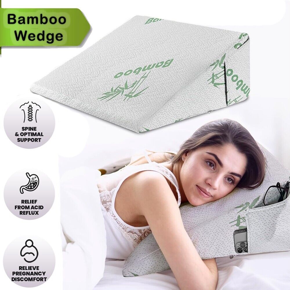 Bamboo Large Bed Wedge Memory Foam Pillow Back Support Acid Reflux Bed Raised UK