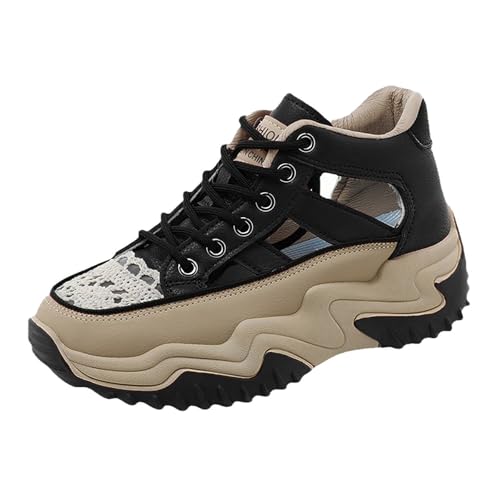 Wedge Trainers for Women UK Hollow Out Sports Shoes Chunky Heel Sneaker Platform Trainer Cushioning Sole Sneakers Non-Slip Athletic Shoes Lace Up Sport Shoe Breathable Wide Fit Sneakers Black