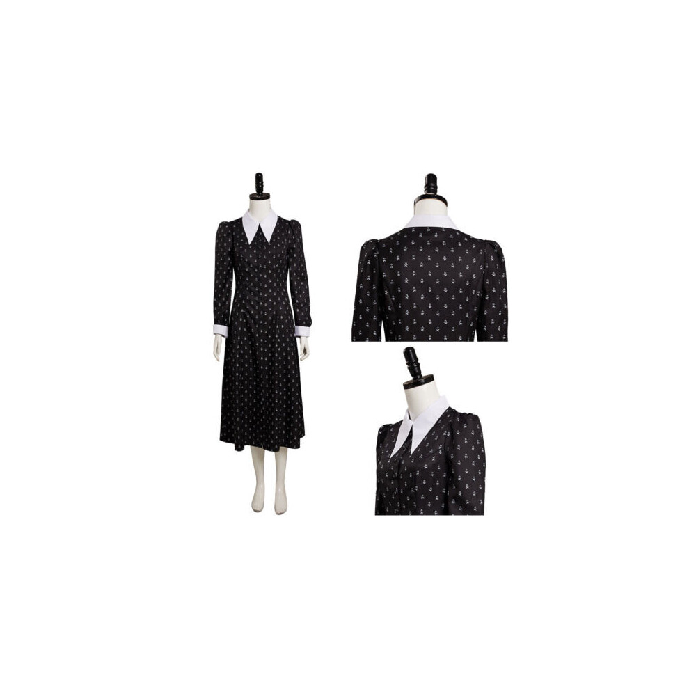 Rubies Wednesday Addams Costume Women Black Printed Dress Officer Wednesday Hall