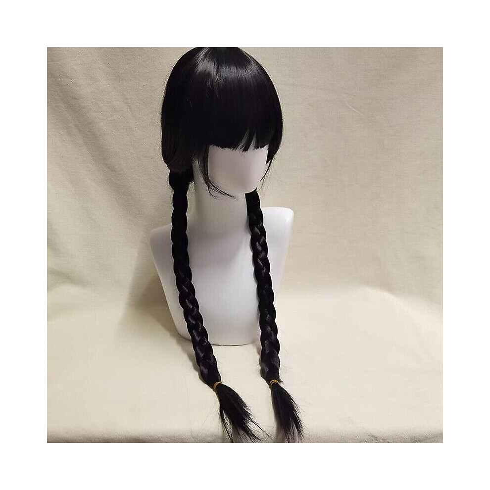 Wednesday Addams Family Wig Braided Black Wig With Bang Costume Girls Adults Kid
