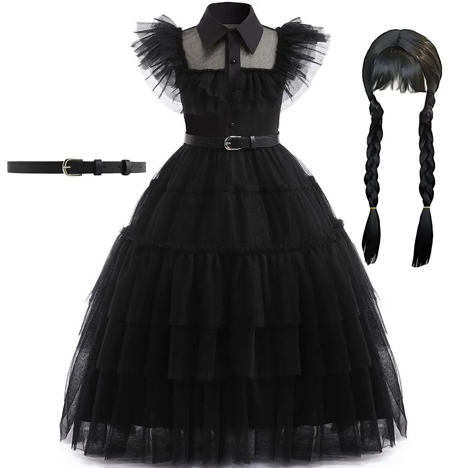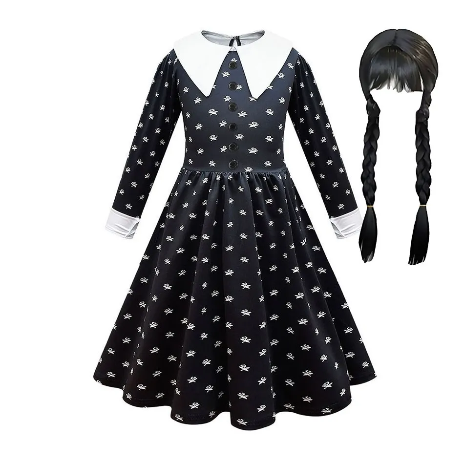 Girls Wednesday Dress - Addams Family Halloween Costume for Kids' Cosplay