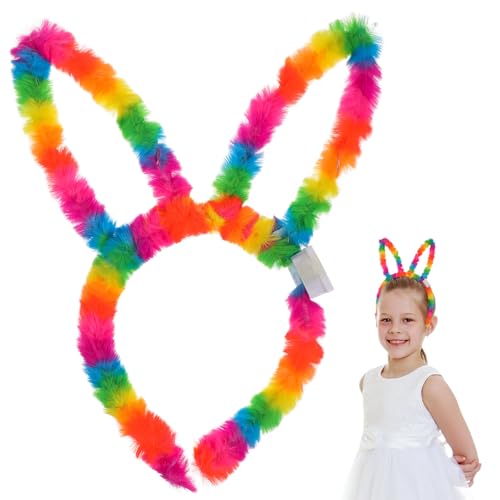 Anneome 3pcs Plush Rainbow Light-up Cartoon Ear Hair Headbands and Adults, Soft Performance Hair Props with LED Glow, Cute Ear Decor Accessories for Party and Festival