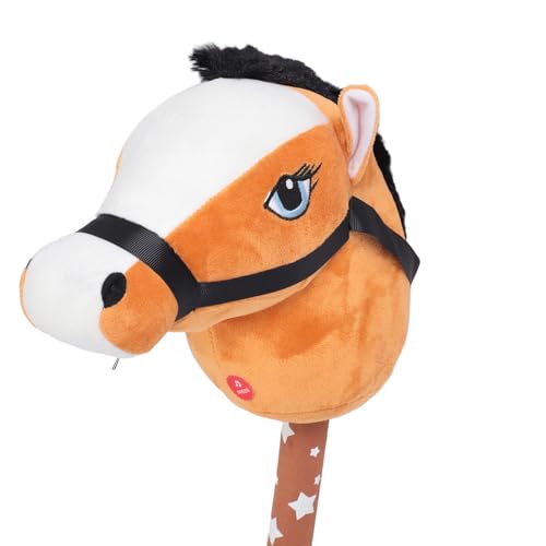 Chiyyak Lifelike Adorable Stick Horse Toy with Sound, Realistic Trotting Neighing Sounds, 70cm Plush Stick Horse with Soft Handle, Great Gift for Little Adventurers (Light Brown with Black Hair)