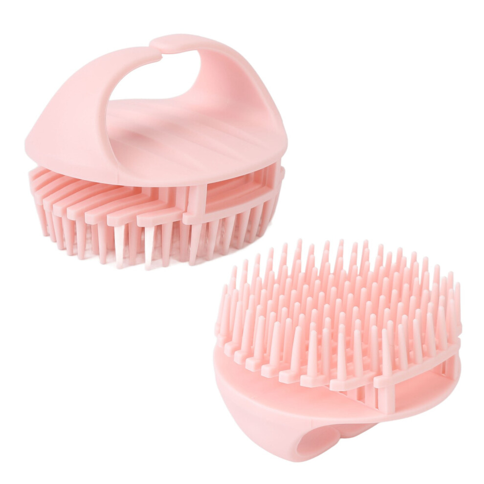 Scalp Scrubber Soft Silicone Bristles Hair Shampoo Brush Scalp Cleaning Massage Comb Light Pink