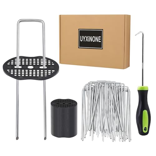 6 Inch 50 Pcs U-Shaped Landscape Garden Stakes Staples, 50 Pcs Fixing Gasket with 1 Pick Hook for Weed Barrier Fabric, Garden Lawn Landscape Staples, Irrigation Hoses, Fixed Fences and Tents