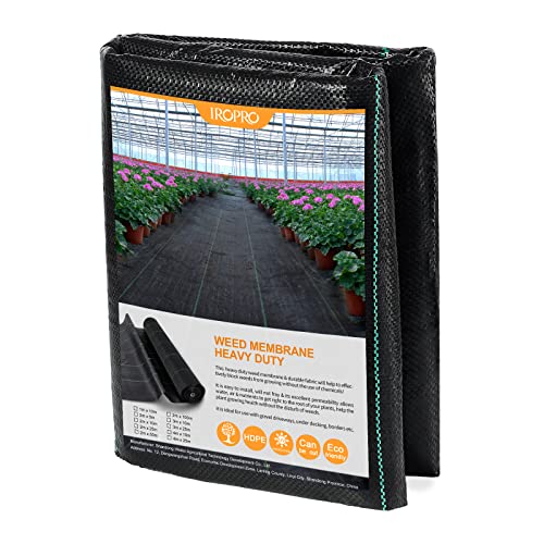 iropro 2m x 50m Heavy Duty Weed Control Membrane Garden Weed Barrier Fabric for Landscaping Driveway Gravel Artificial Grass Lawn Underlay Black Woven Roll Ground Cover