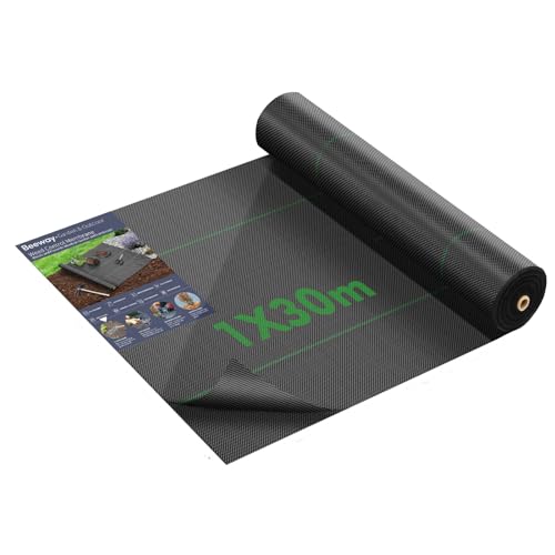 BEEWAY Weed Control Membrane 1m x 30m/Roll, Heavy Duty Weed Suppressant Membrane 90gsm, UV Stabilised Weed Barrier Fabric/Ground Cover for Patios Garden Landscape Flower Beds