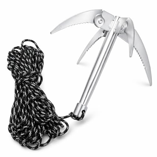 Alomejor Fishing Water Grass Anchor Knife with 10m Rope Stainless Steel Durable Foldable Weed Remover for Fishing Pool