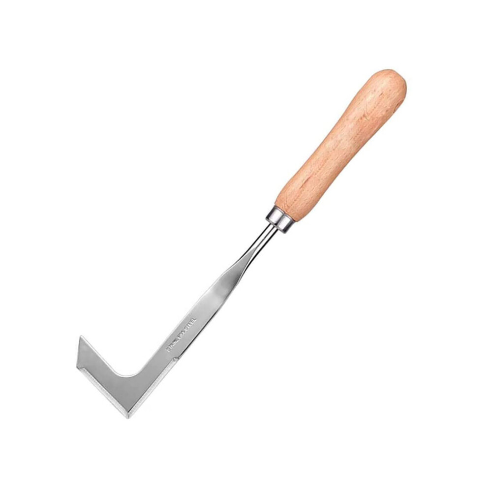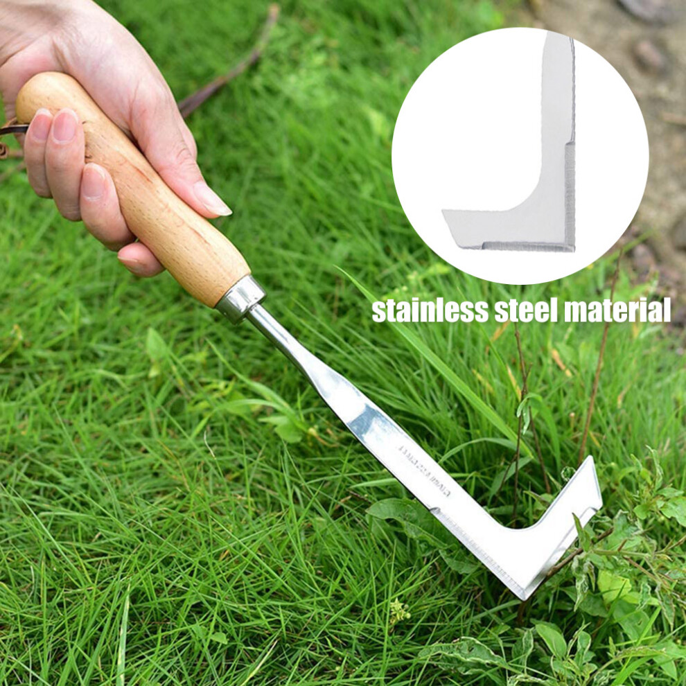 Stainless Steel Crack Weeder with Wood Handle Weeding Sickler Weed Puller Weeder Tool Machete Hook Knife Yard Lawn Tool