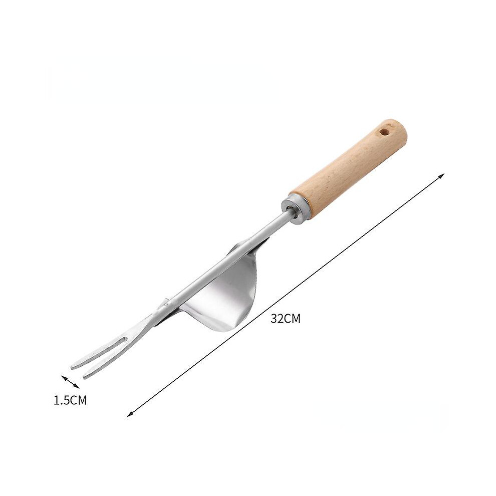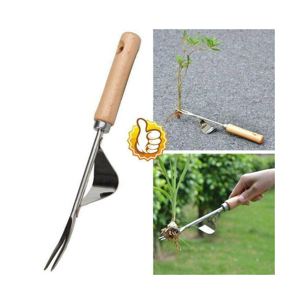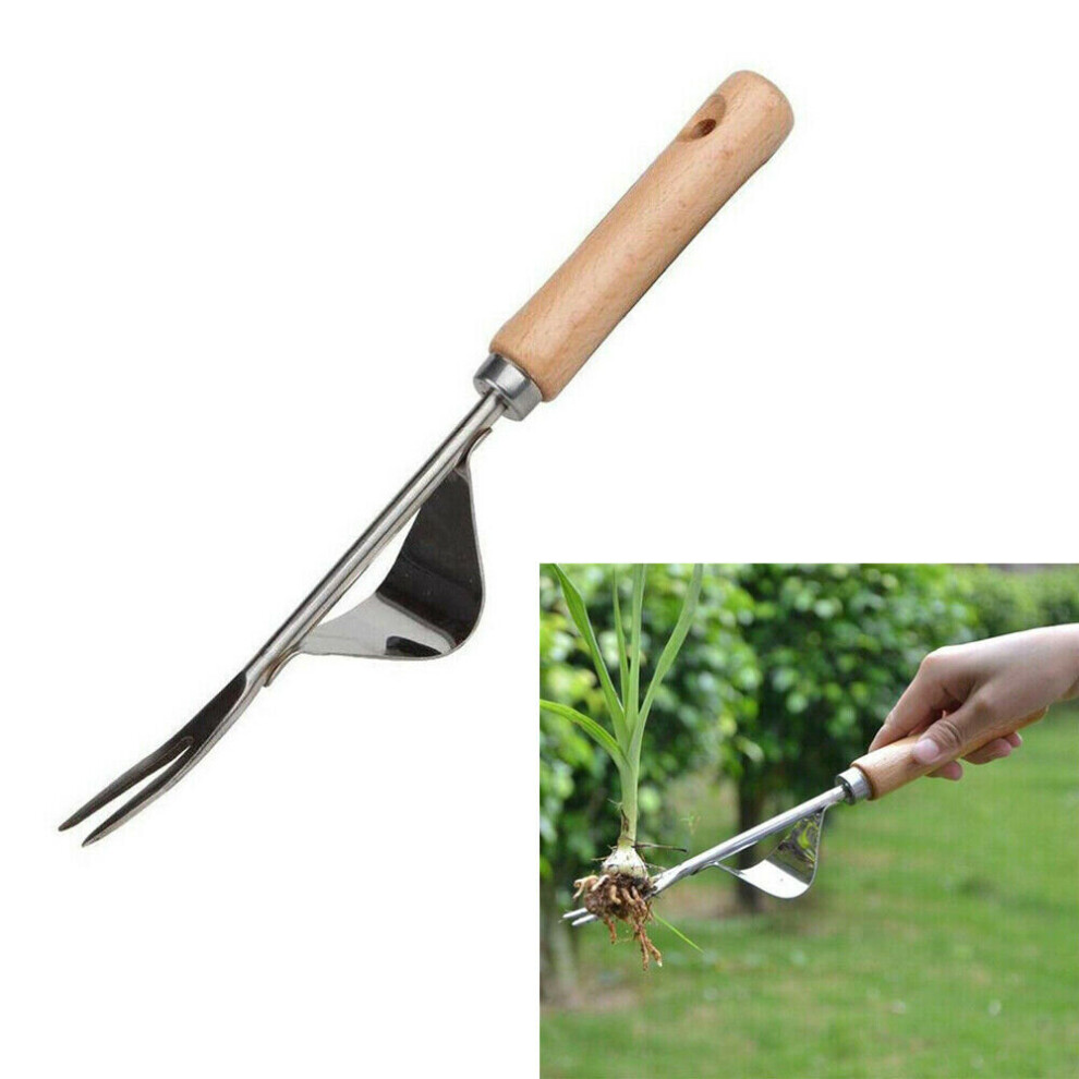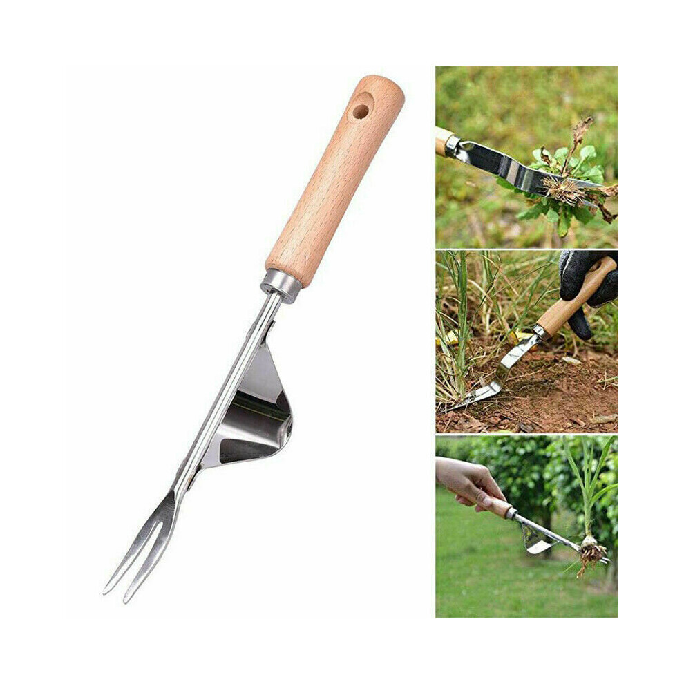 Stainless Steel Manual Weeder Wooden Handle Hand Weeding Tool Weed Puller for Weeding A19