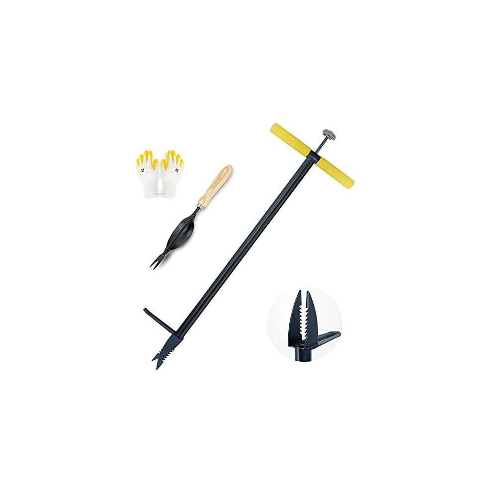 Beenle-Icey Weed Puller Stand Up Manual Weed Removal Tools 39inch Long Handle Weeder Extractor with 3 Stainless Steel Claw Weed Root Twist Killer with Gloves for Lawn Yard Garden Patio
