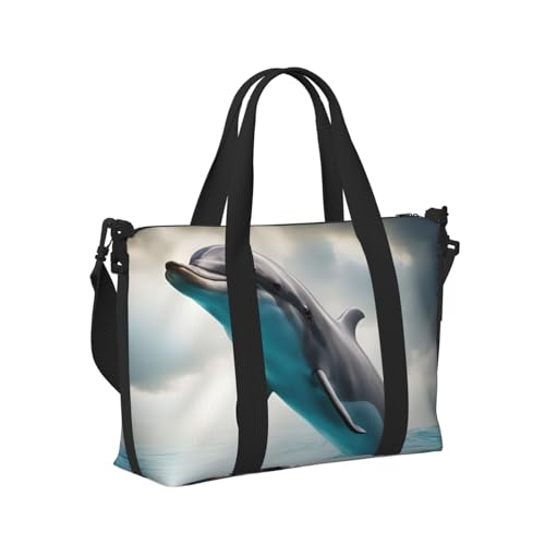 Funny Dolphin Looking at You Print Travel Hand Bag Women Lightweight Tote Foldable Daily Weekend Trips Gym Vacation