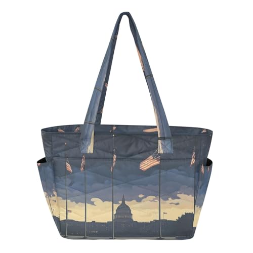 Women's Tote Handbag Beach Bags for Travel & Beach Weekend Getaway with Multiple Pockets & Zipper Compartments Flags at
