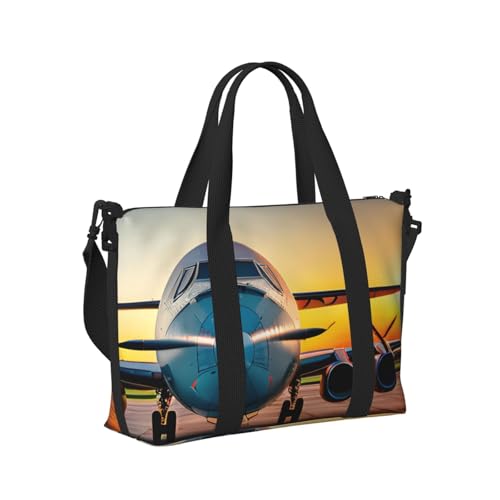 Aircraft Plane at Sunset Print Travel Hand Bag Portable Foldable Shoulder Tote Bags for Weekend Trip Gym Vacation