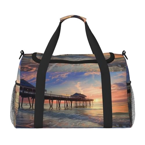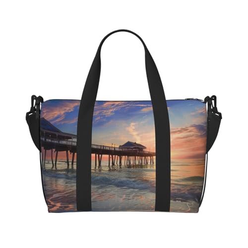 Sunset at The Beach Bridge Printed Carryall Tote, Travel Underseat Hand Luggage Bag, Organizer Carry on Hand Bag for Gym Weekend Women and Men