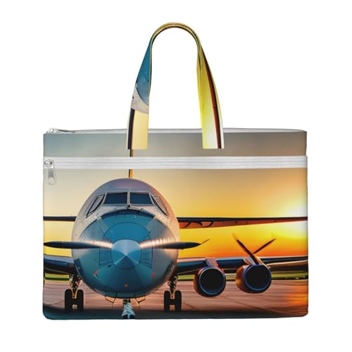 Aircraft Plane At Sunset Print Canvas Tote Documents Office Supplies Business Meeting Weekend Getaway File Bag