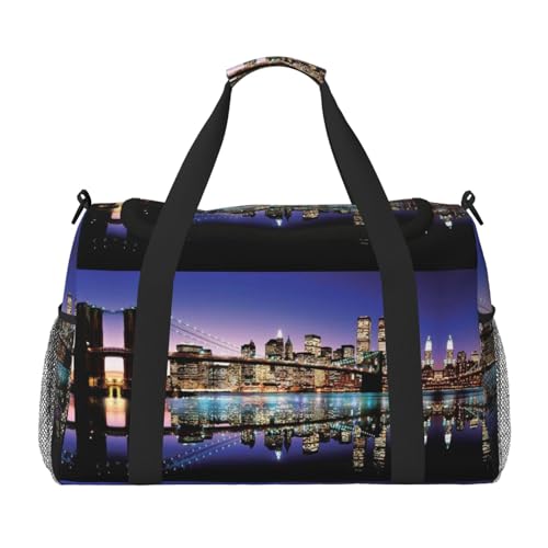 Brooklyn Bridge at Night Full Print Travel Duffle Bag with Adjustable Shoulder Strap,Large Capacity Twill Polyester Crossbody Bag for Gym,Weekend Trips Outdoor Activities