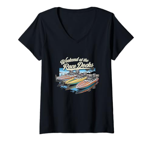 Women's Weekend at The Race Docks Motor Boating Drag Boat Lifestyle V-Neck T-Shirt