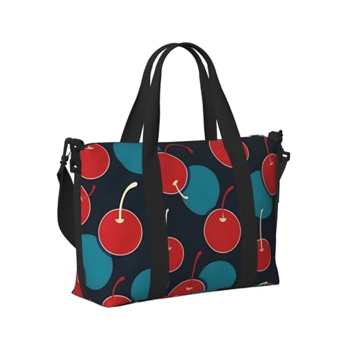 Mexpekil Red Cherry Blue Circle Travel Duffel Bag Waterproof Sports Gym Bag Large Weekend Overnight Bags for Women Men Foldable Carry On Luggage Tote Bag for Flight