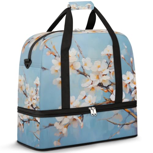 Travel Duffel Bag with Shoes Compartment & Trolley Sleeve Art Apricot Blossom Flower Sports Gym Bag Foldable Weekend Bags for Women Men