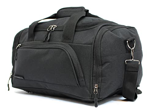 SiXsigma Sports Ryanair Cabin Duffle Bag with Adjustable Shoulder Strap Holdall Bag Grey – Perfect Under Seat Airline Hand Luggage Bag, Gym Bag, Sports Bag - Weekend Bags for Women & Men (Black)