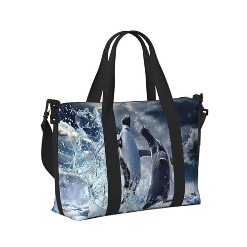 Mexpekil Cute Penguin Travel Duffel Bag Waterproof Sports Gym Bag Large Weekend Overnight Bags for Women Men Foldable Carry On Luggage Tote Bag for Flight