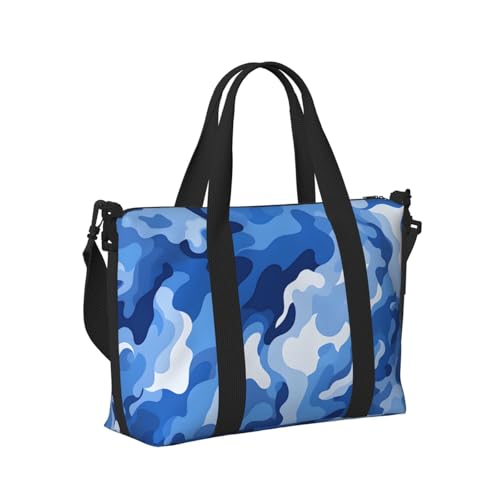 Mexpekil Camouflage Blue Travel Duffel Bag Waterproof Sports Gym Bag Large Weekend Overnight Bags for Women Men Foldable Carry On Luggage Tote Bag for Flight