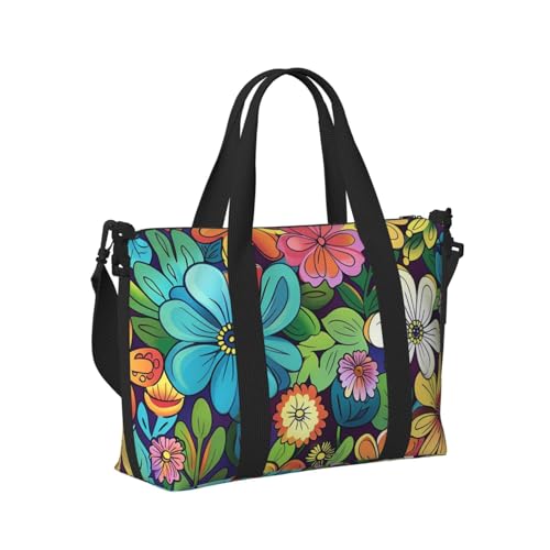 Mexpekil Flowers Cartoon Travel Duffel Bag Waterproof Sports Gym Bag Large Weekend Overnight Bags for Women Men Foldable Carry On Luggage Tote Bag for Flight