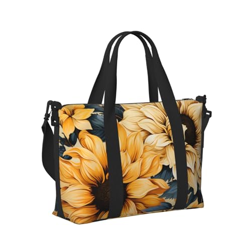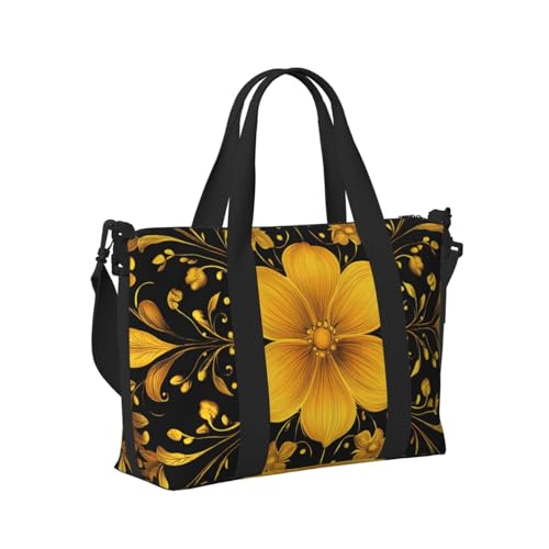 Mexpekil Gold Yellow Floral Travel Duffel Bag Waterproof Sports Gym Bag Large Weekend Overnight Bags for Women Men Foldable Carry On Luggage Tote Bag for Flight