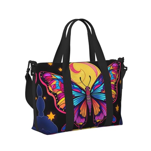 Mexpekil Butterfly Moon Star Travel Duffel Bag Waterproof Sports Gym Bag Large Weekend Overnight Bags for Women Men Foldable Carry On Luggage Tote Bag for Flight