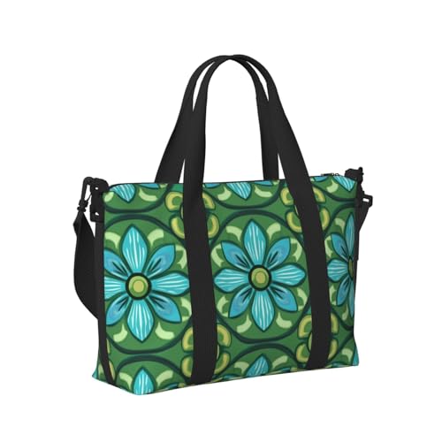 Mexpekil Retro Teal Floral Travel Duffel Bag Waterproof Sports Gym Bag Large Weekend Overnight Bags for Women Men Foldable Carry On Luggage Tote Bag for Flight