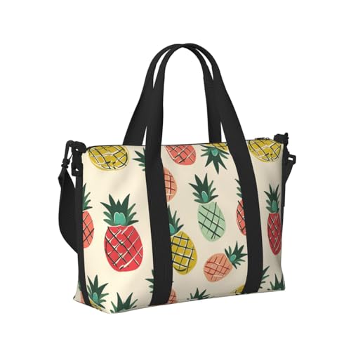 Mexpekil Pineapple Cute Travel Duffel Bag Waterproof Sports Gym Bag Large Weekend Overnight Bags for Women Men Foldable Carry On Luggage Tote Bag for Flight