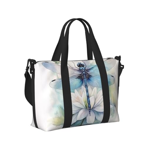 Mexpekil Painting Blue Dragonfly Floral Travel Duffel Bag Waterproof Sports Gym Bag Large Weekend Overnight Bags for Women Men Foldable Carry On Luggage Tote Bag for Flight