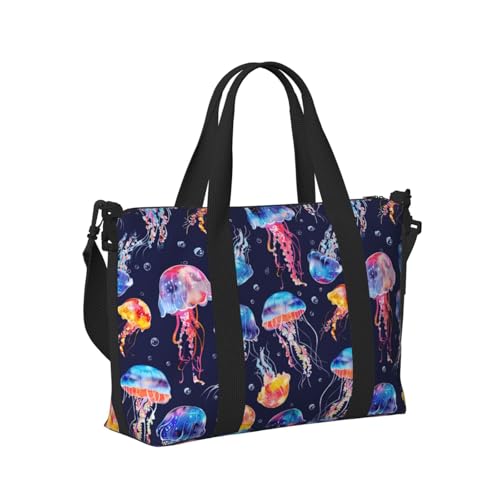 Mexpekil Jellyfish Art Travel Duffel Bag Waterproof Sports Gym Bag Large Weekend Overnight Bags for Women Men Foldable Carry On Luggage Tote Bag for Flight