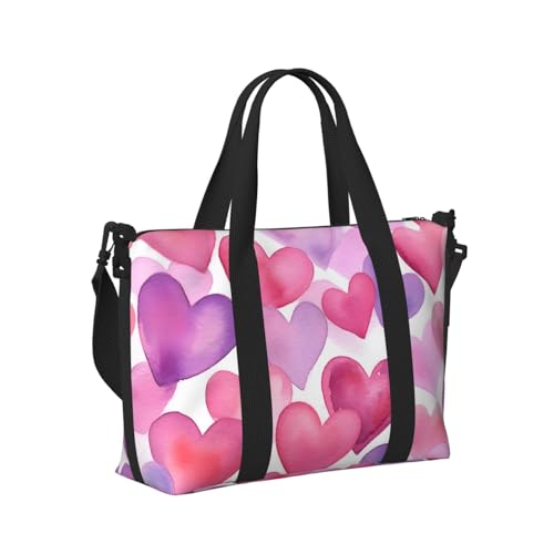 Mexpekil Love Hearts Pink Travel Duffel Bag Waterproof Sports Gym Bag Large Weekend Overnight Bags for Women Men Foldable Carry On Luggage Tote Bag for Flight