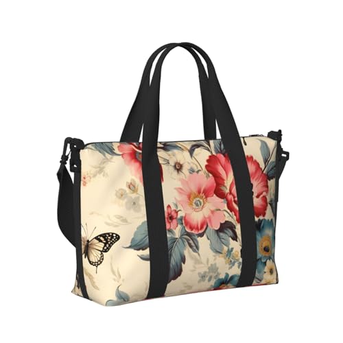 Mexpekil Vintage Butterfly Flowers Travel Duffel Bag Waterproof Sports Gym Bag Large Weekend Overnight Bags for Women Men Foldable Carry On Luggage Tote Bag for Flight